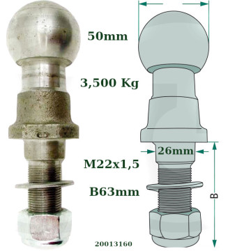 50 mm-es menetes csatlakozóval Menet 22x1,5, max. vontatható tömeg 3.500 kg. A (mm): 26 B (mm): 63 Menet: M22 x 1,5 Megeng. max. vontatható tömeg (kg): 3500