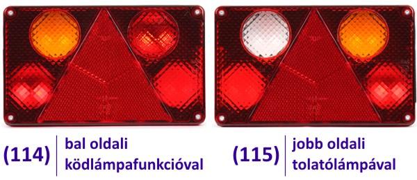 Alkalmazás: 6 funkciós tégla hátsólámpa integrált 3szög prizmával a belső oldalán rendszámvilágítással. Az alapfunkciókon túl a bal oldali kivitel ködlámpával, a jobb oldali tolatólámpával rendelkezik. Rendkívül jól alkalmazható az "U" profilú hátsó lökhárítóval rendelkező nagyobb utánfutókhoz.